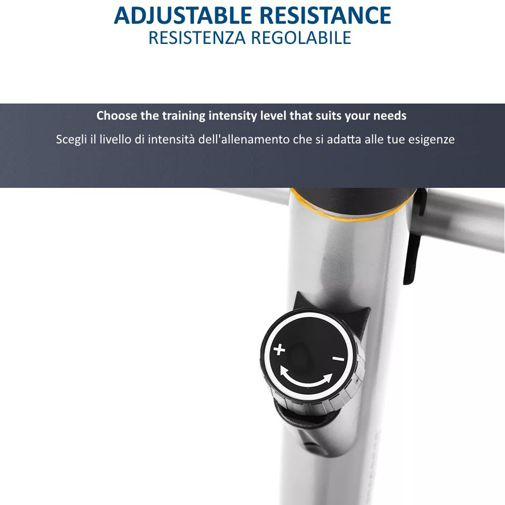 🔸 NOTA BENE: La cyclette potrebbe presentare un movimento non omogeneo durante le prime pedalate: infatti, la resistenza è generata da una cinghia in velcro che necessita di una fase di rodaggio prima di lavorare correttamente. Più la cyclette sarà utilizzata e maggiore sarà la fluidità della pedalata