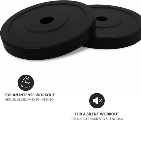 🔸 I dischi di vari pesi disponibili, sono realizzati con un solido nucleo metallico in ghisa e rivestiti da uno strato protettivo in gomma ad alta resistenza, pensati per durare nel tempo anche con un uso intensivo. Il rivestimento antiurto protegge il pavimento da eventuali cadute e riduce al minimo il rumore durante l’allenamento, rendendo le tue sessioni più sicure e silenziose