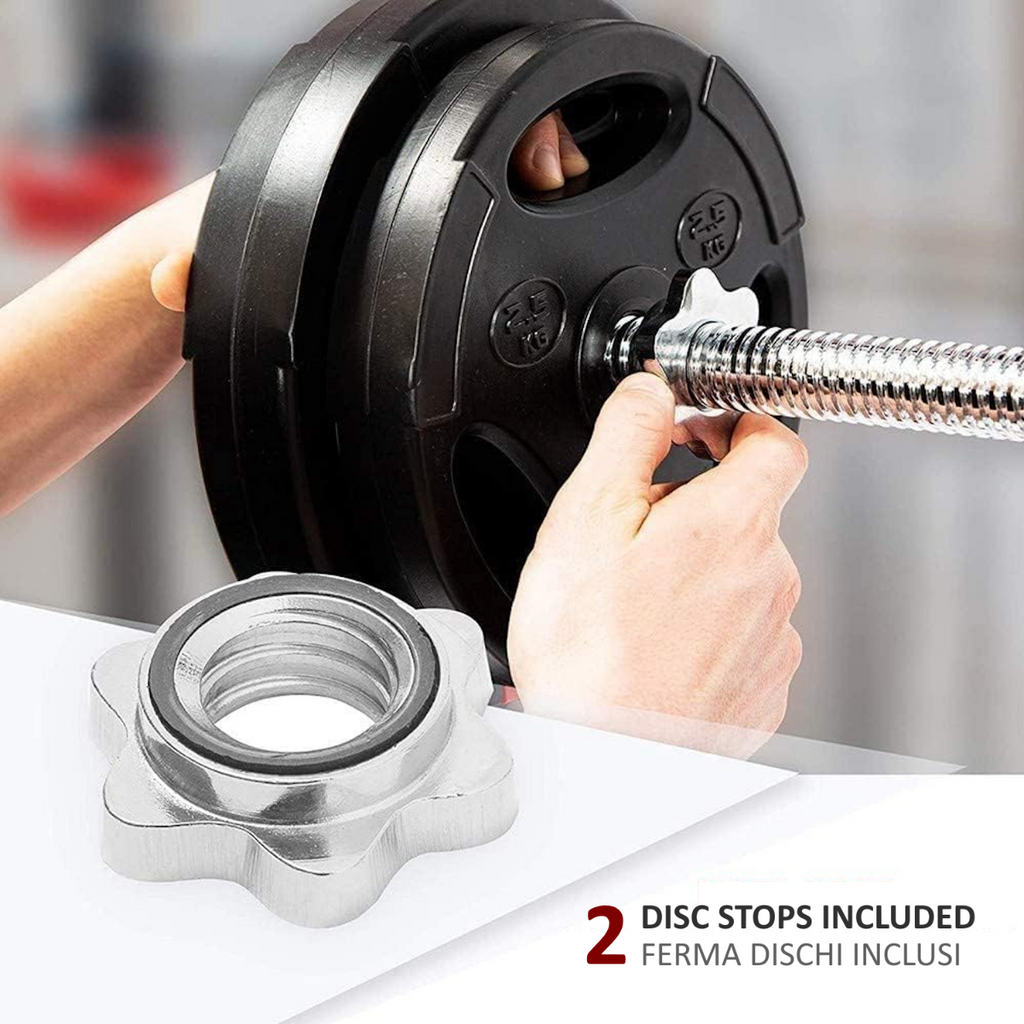 🔸 Dotato di 2 chiusure a vite a stella, mantiene i dischi saldamente bloccati alla barra durante l’allenamento ma allo stesso tempo Il cambio del disco per l'aggiunta o la riduzione del peso sarà un’operazione semplice e veloce. Compatibile con tutti i dischi da alesaggio da almeno 25 mm