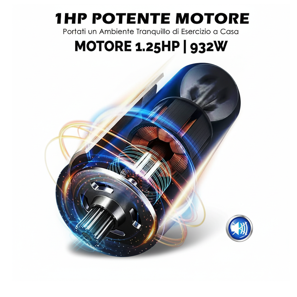 🔸 Motore più resistente e duraturo da 950W (1.25 cavalli, con potenza di picco a 3 cavalli): ti alleni per 30 minuti a sessione senza pensieri